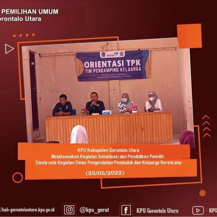 #TemanPemilih. Kwandang (25/05/22). Dalam rangka menghadapi Pemilu serentak Tahun 2024, Komisi Pemilihan Umum Kabupaten Gorontalo Utara melaksanakan kegiatan Sosialisasi dan Pendidikan Pemilih.