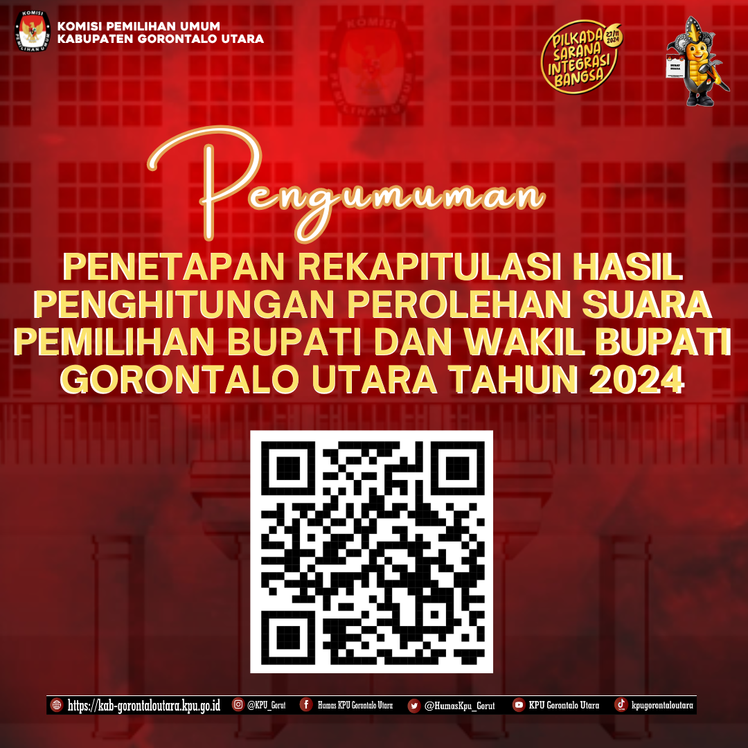 PENGUMUMAN REKAPITULASI HASIL PENGHITUNGAN PEROLEHAN SUARA PEMILIHAN BUPATI DAN WAKIL BUPATI GORONTALO UTARA TAHUN 2024