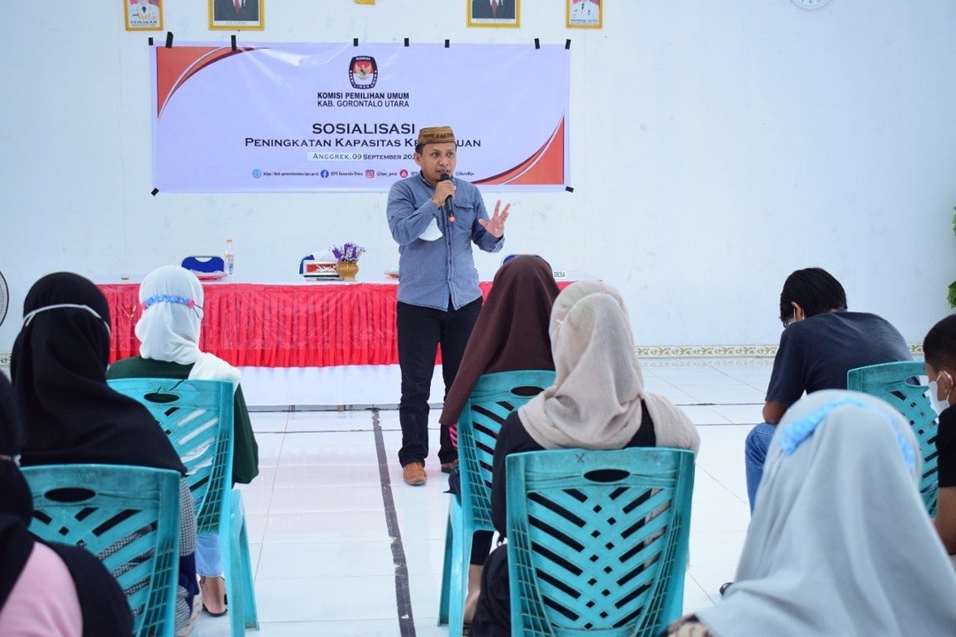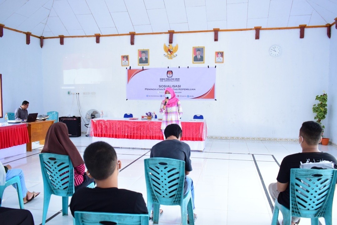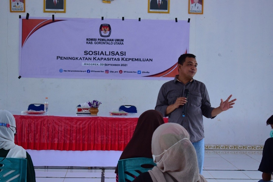 #TemanPemilih. Anggrek (09/09/2021), Komisi Pemilihan Umum Kabupaten Gorontalo Utara mengadakan Sosialisasi Peningkatan Kapasitas Kepemiluan yang dilaksanakan di Desa Iloheluma, Kecamatan Anggrek.